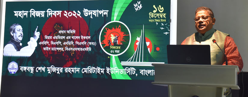 Bangladesh Maritime University observed Victory Day 2022. The day's program began with the hoisting of the National Flag at sunrise. The Vice-Chancellor of the University Rear Admiral M Khaled Iqbal (retd) graced the occasion as the Chief Guest. Documentary screening on Victory Day, poem recitation, and essay competition were held during the program. Alongside, BMU Cultural Club organized a cultural program to mark the Day. Later prizes were distributed among the winners of all the competitions. BMU Treasurer, Registrar, Deans, Teachers, Students, Officers and Staffs attended the program as well. The event was streamed live on BMU's official Facebook page.