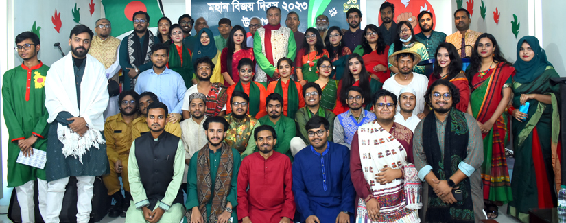 Hon'ble Vice-Chancellor with students in a group photo session at a function organized on the occasion of Victory Day 2023.