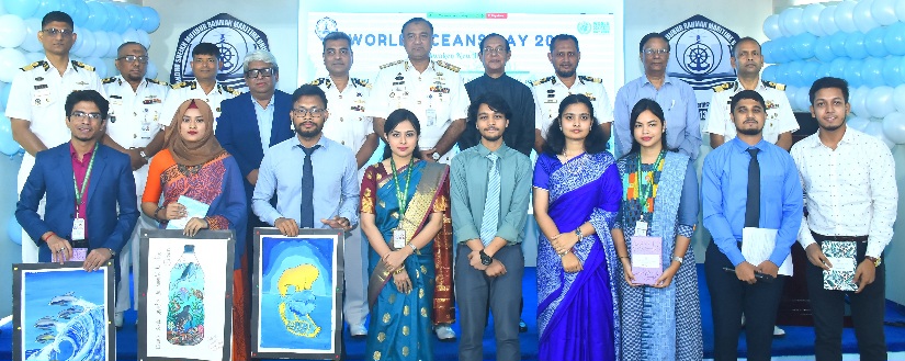 Like every year, Bangabandhu Sheikh Mujibur Rahman Maritime University (BMU) observes the World Oceans Day 2024. The theme of this year’s World Oceans Day is “Awaken new depth: Catalysing action for our ocean and climate”. A seminar was organized at the university auditorium to mark the day. Hon’ble Vice-Chancellor of the University, Rear Admiral Mohammad Musa graced the occasion as the Chief Guest. Commodore Mohammad Minarul Haque, Dean of the Faculty of Earth and Ocean Sciences of the university delivered the welcome speech. The keynote speech was presented by Prof. Dr. Mizan R. Khan from Independent University of Bangladesh. Moreover, Prof. Dr. Mohammad Nazir Hossain, Head of Department of Genetic Engineering and Marine Biotechnology of BMU delivered a valuable speech. Nandita Pal, student of Department of Oceanography and Hydrography and Itmam Haider, student of Department of Naval Architecture and Offshore Engineering from BMU also presented two scientific papers at the seminar. Along with seminar, quiz and art competition were organized as part of the day's celebration. Later, BMU Vice-Chancellor handed over the prizes among the winners of the competitions.The Treasurer, Registrar, Academic Advisor, Deans, Head of the Departments, Teachers, Officers and Students of the University actively participated in the seminar.