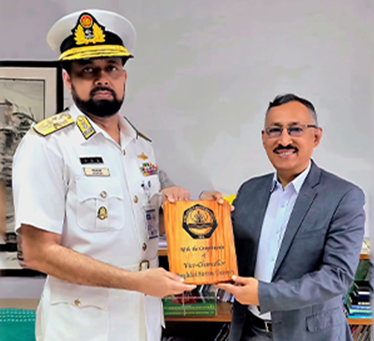 The new appointed honourable Vice Chancellor of Bangladesh Maritime University Rear Admiral Dr. Khandakar Akhter Hossain, NUP, ndc, psc, PhD paid a courtesy call on with honourable Senior Secretary of Secondary and Higher Education Division Mr. Siddique Zobair on 13 May 2025. He had a fruitful discussion with the Senior Secretary describing the ongoing academic and administrative activities of the university at its temporary campus. He has also informed the Senior Secretary about the ongoing construction works of establishing university's permanent campus at Hamidchar, Chattogram. At that time the Honourable Senior Secretary assured the Vice Chancellor to whole hearted support to smooth journey of the university along with establishing permanent campus.